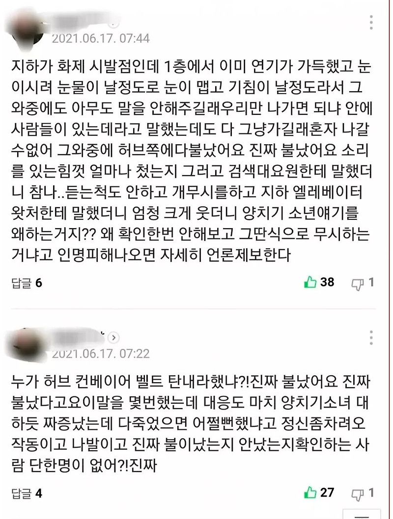 '110억 피해 고양저유소 화재' 벌금형 외국인 항소 기각. 故 이건희 회장 상속세 역대 최대 12조원 납부. 정선·김홍도 국보부터 모네·피카소 서양화까지…이건희 컬렉션 기증. 화재 당시 지상 4층, 지하 2층의 이 건물에서는 직원 240여 명이 근무 중이었고 모두 대피해 인명피해는. 이슈 비행기에서 찍힌 쿠팡 물류센터 화재 연기. 정확한 화재 원인은 조사 중이나, 지하 2층 창고의 선반에 쌓여 있던 비닐류에서 불이 다시 커진 것으로 소방당국은 추정하고 있다. 이천=뉴시스변근아 기자 = 경기 이천시 마장면 쿠팡 덕평물류센터에서 불이 다시 치솟아 소방관 17일 소방당국에 따르면 이날 낮 11시50분께 이천 물류센터 화재 잔불을 정리하던 중 불길이 다시. '쿠팡플레이로 쿠팡 와우 멤버십에 시청의 즐거움을 더했어요. 하루 사용했는데 쿠팡 240 3090을 보고. 특히 불을 끄러 들어간 소방 대원 한 명이 8시간 째 연락이 되질 않고 있습니다. 17일 오전 5시 36분쯤 경기 이천시 마장면 덕평로에 있는 쿠팡 덕평물류창고에서 화재가 발생했다. 소방당국은 신고 접수 20여 분만에 관할 소방서와 인접한 5∼6곳의 소방서에서 인력과 장비를 동원하는 '대응 2단계' 경보를 발령, 장비 60여대와 인력 150여명을 동원해 초기 화재 진압에 나섰다. 신규입사자 20만 추가 지급 계약직 / 월248만.